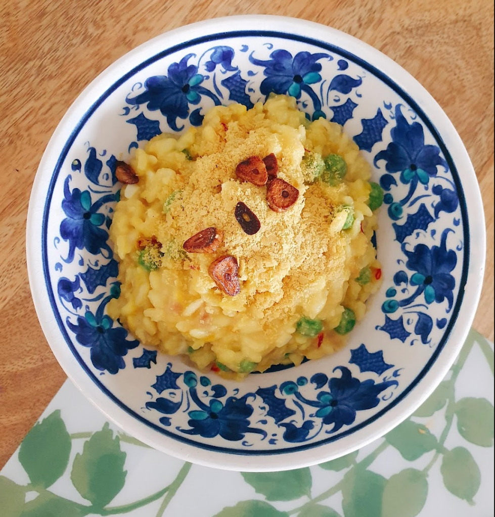 - Nutritional yeast gives a nice cheesy flavour to the risotto.