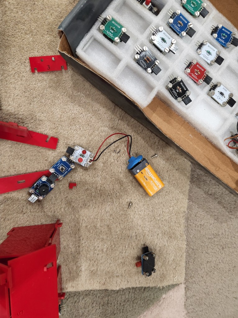 The AI Starter Kit is an awesome introduction to electronic circuits and how things work. This would need some adult supervision because the parts are quite delicate and need explaining. We made it with him as a way to spend time together.