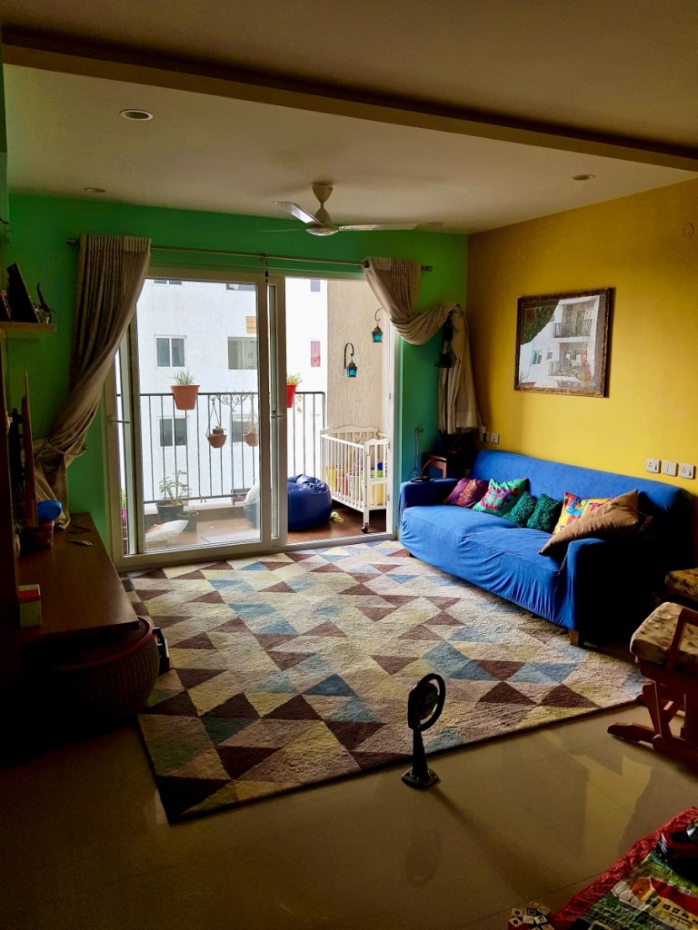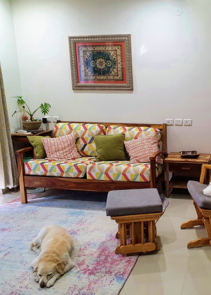 When we had shifted into our current home, we wanted it to be bright and colourful. We opted for a combo of yellow and seafoam in the living room and similar tones in the bedrooms. It felt cheerful. When it was time to repaint, we wanted a simpler look. So we opted for a bright white, with only the furnishings and wall art bringing in the colours.