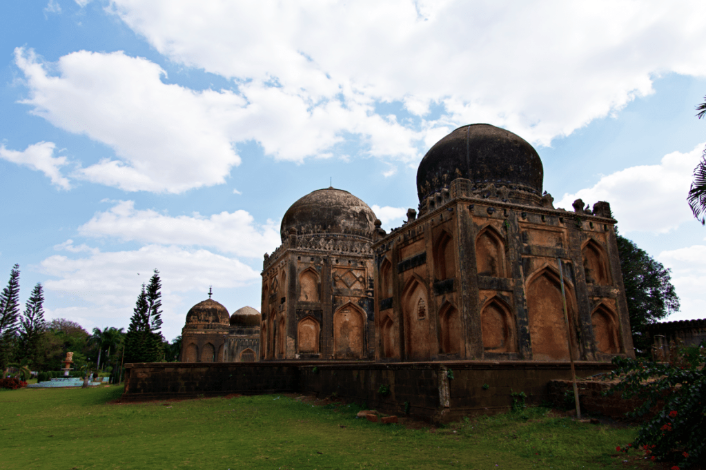 The madrasa (religious seminary) was built by the prime minister of the Bahmani Empire, Mahmud Gawan, in the late 15th century. Even after centuries worth of wear and tear and a lightning strike, it still looks stunning. The 100 feet high tower seen from the road still has remnants of mosaic tiles from ages ago. A broad frieze along the top of the front wall has been inscribed with phrases from the Holy Q’uran. It would have looked stunning in its heyday!