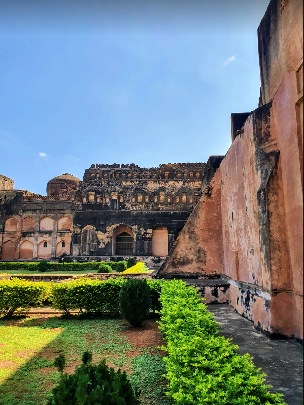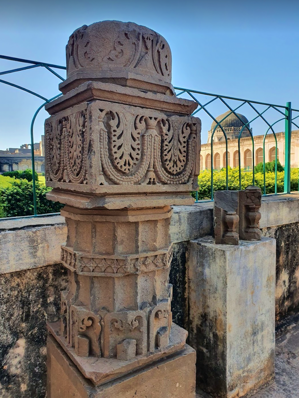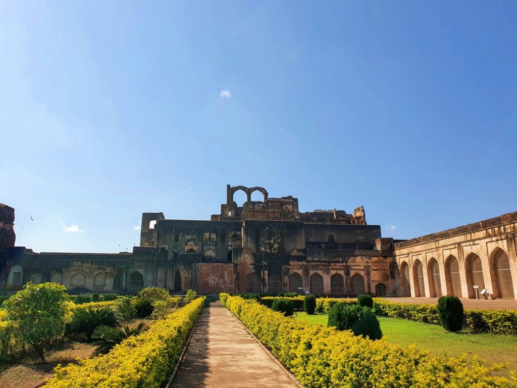 Some of the outer walls had the original mosaic tiles that gleamed in the sun. Within the fort complex, there are monuments and structures from the Bahamian era such as the Gagan Mahal, Rangeen Mahal, Tarkash Mahal, Jami Masjid, and the Solah Khamba Masjid.
